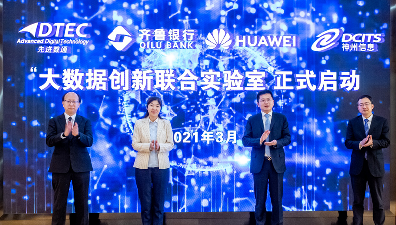 3月10日,“大数据创新联合实验室”签约仪式在齐鲁银行总行举办,齐鲁银行股份有限公司(以下简称:齐鲁银行)、华为技术有限公司(以下简称:华为)、北京EVO视讯信息技术股份公司(以下简称:EVO视讯)与神州数码信息服务股份有限公司(以下简称:神州信息)四方代表齐聚,共同签署了金融大数据创新发展合作协议。四方将在互利互惠、合作共赢的原则上,共同开展金融大数据应用合作,建立金融大数据创新发展新生态,全面推进金融业数字化转型。